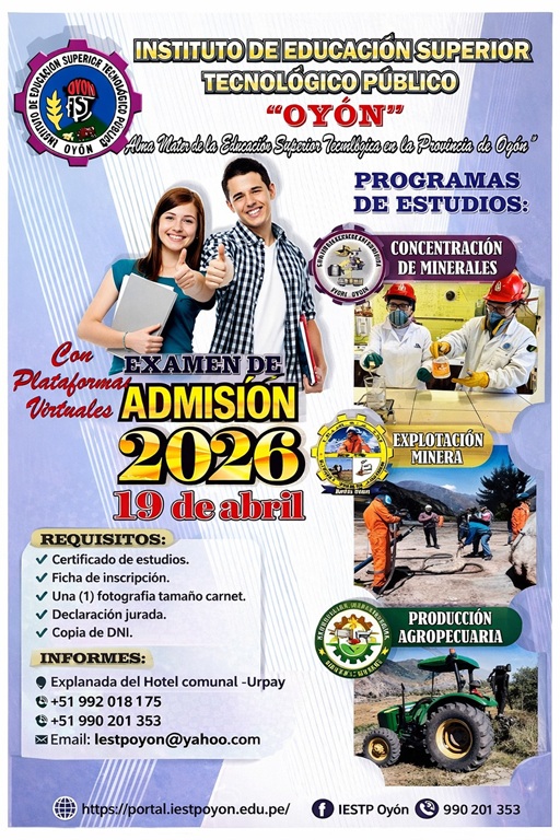 (Explanada del Hotel TurÃstico Oyon) Paraje Urpay – Distrito y Provincia de Oyón – Departamento de Lima.